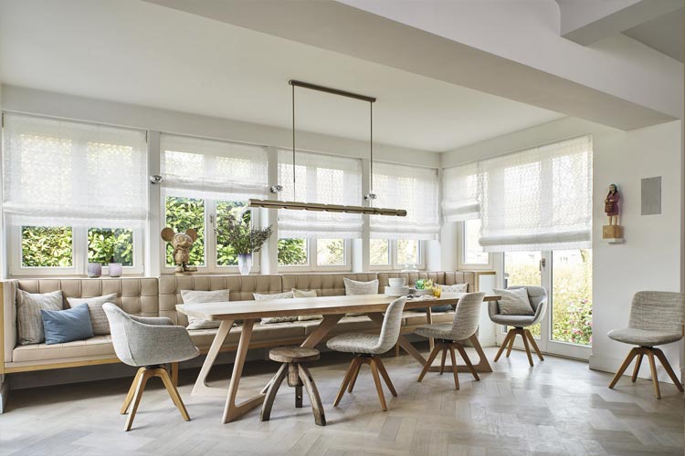 Raffrollos gibt es in unterschiedlichsten Ausführungen – blickdicht, verdunkelnd, halbtransparent oder transparent. Besonders beliebt sind halbtransparente Textilien, sie eignen sich bestens für das Home-Office, aber auch für Küche, Kinderzimmer und Bad. Generell eignen sich Raffrollos vor allem für kleine und mittlere Fenster und überall dort, wo lange Gardinen unpraktisch wären – z.B. im Kinderzimmer, Bad und in der Küche. Im Kinderzimmer können sie auch eingesetzt werden, wenn eine Kindersicherung für die Kette montiert wird. Das ist eine neue EU-Richtlinie.